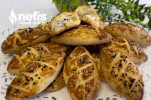 - Hamuru hafif parmak uçlarınızla oval bir formda açın içerisine peynir yerleştirin kapatın.