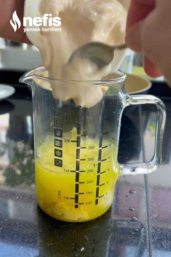 2. Ayrı bir kapta mayonez, sirke, hardal, su ve tuzu karıştırın.