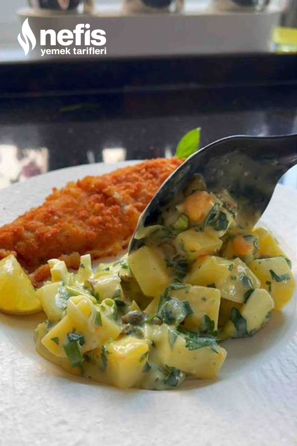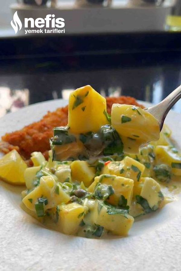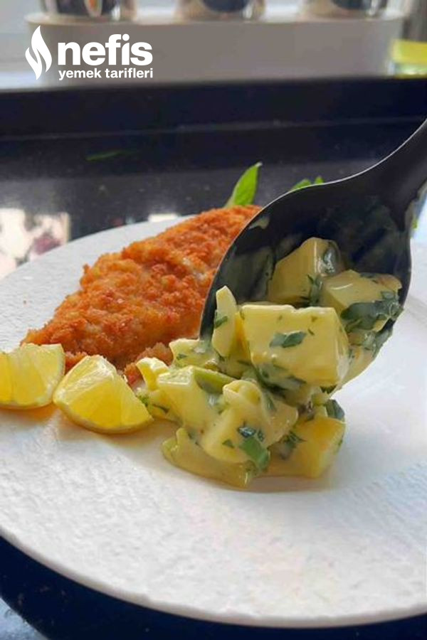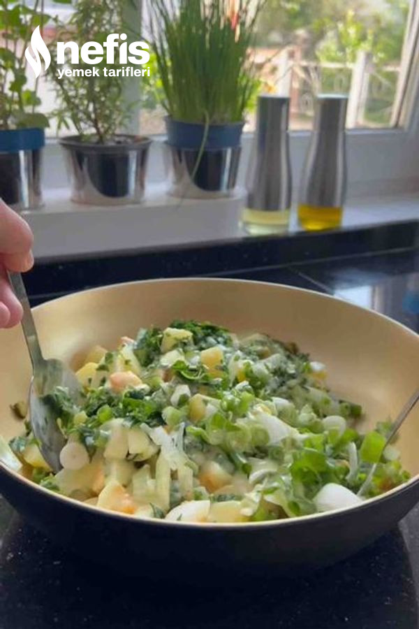 4. Kısa bir mühlet sonra patatesler sosu içine çeker ve salata kremamsı bir kıvam kazanır.