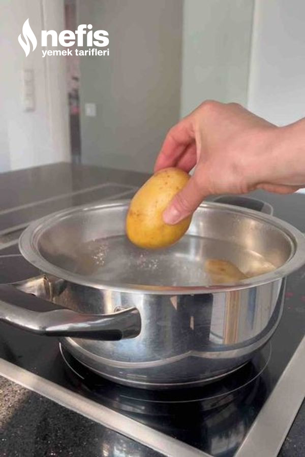 1. Patatesleri haşlayıp soyun ve ince dilimleyin. Üzerine doğranmış soğan ve turşuyu ekleyin.