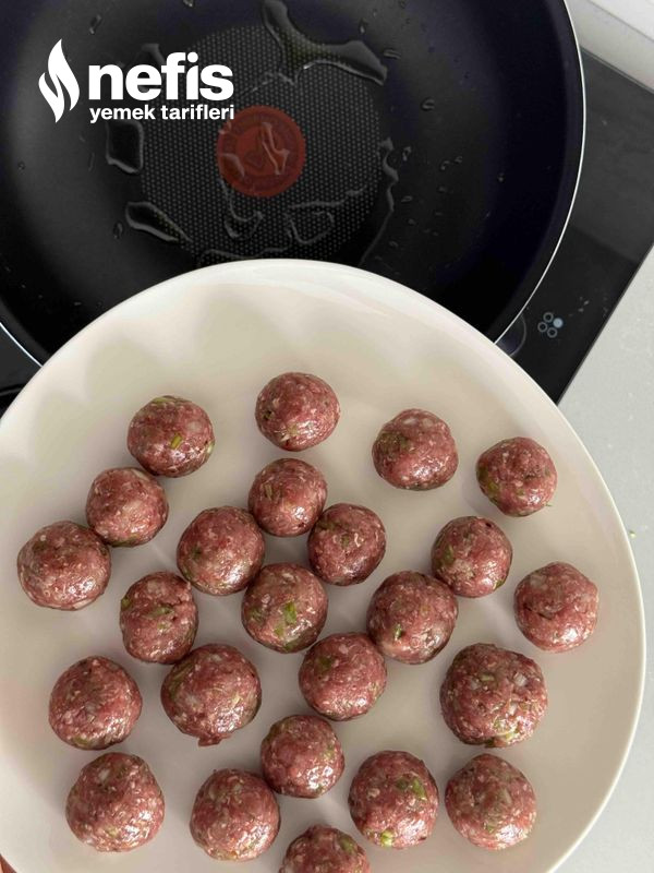 - Elimizle yuvarlak form verdikten sonra yüksek ateşte köfteleri pişiriyoruz.