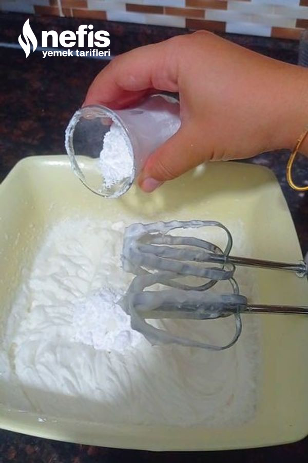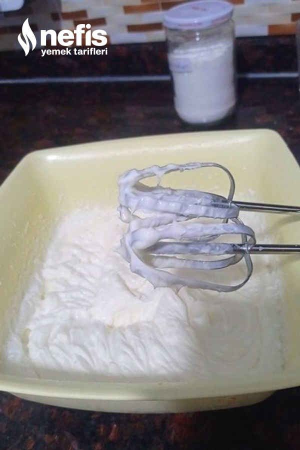- Uygun bir kabın içine krem şanti ve sütü ekleyip mikser ile birlikte köpürene kadar çırpalım.