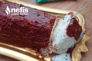 - Daha sonra pudra şekeri ekleyip tekrar çırpalım ve son olarak da hindistan cevizi ekleyip 1-2 tıp daha çırpalım ve üzerine streç sinema geçirerek çikolata eritene kadar 5 – 10 dk buzdolabında dinlendirelim.