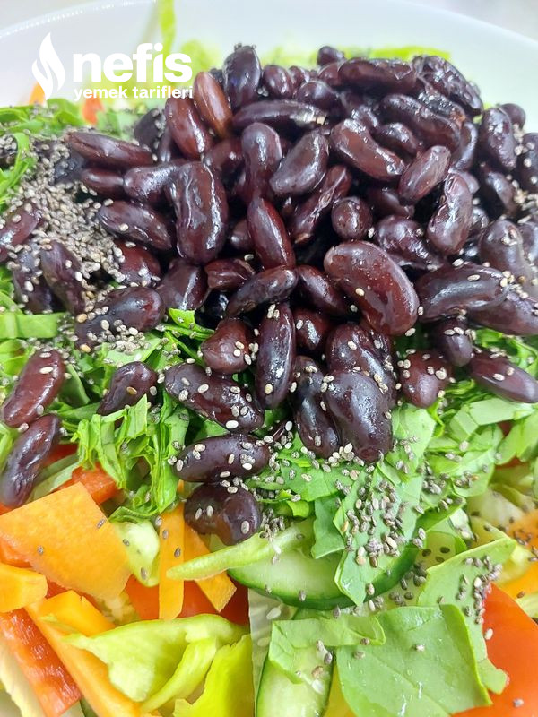 3. Meksika fasulyesi en son üzerine eklenir ve chia tohumu da eklenir.