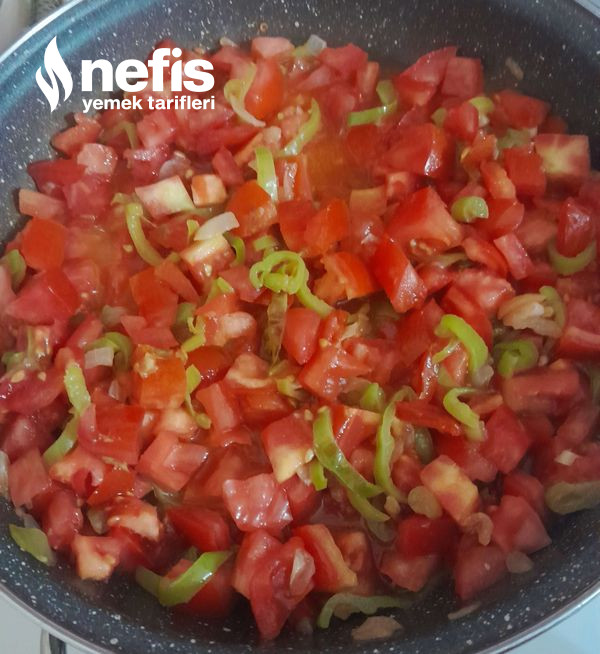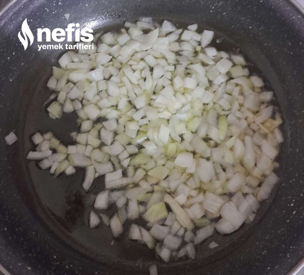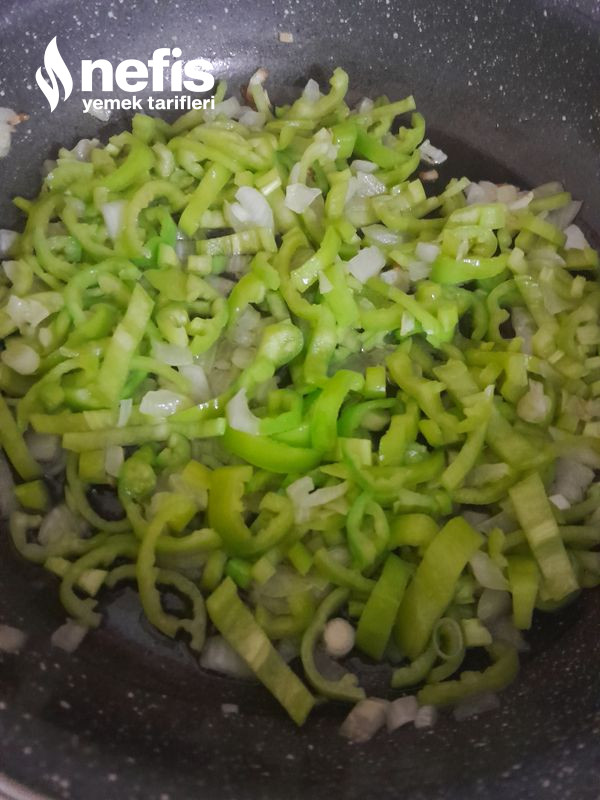 - İlk evvel bir tavaya zeytinyağını alın ve soğanları kavurun. Kavrulan soğanların üzerine sarımsak ve biberleri koyun kavurmaya devam edin.