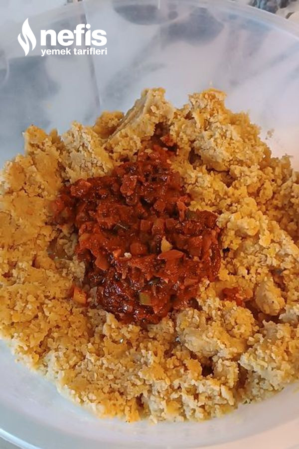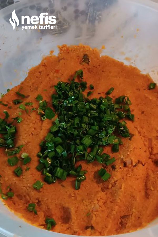- Şişen mercimekli harcın üzerine salçalı sosu döküp iyicene harmanlayarak üzerine yeşil soğanı ve maydanozları ek edip elinize alıp parmak uçları yardımıyla form verilir. Afiyet olsun.