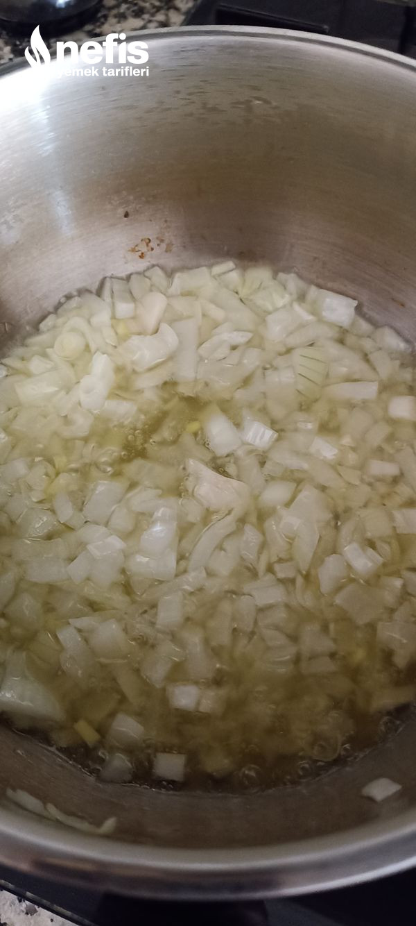 1. Soğanları ve sarımsağı küçük küçük doğrayıp yağda kavurun.