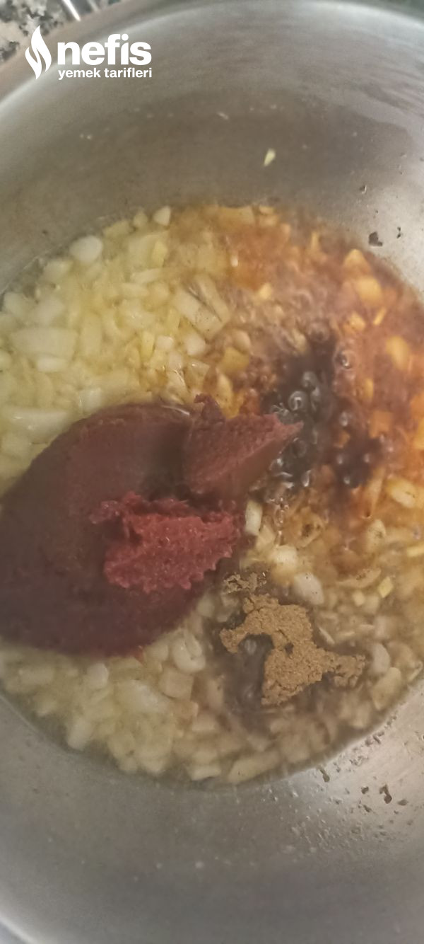 2. İçine evvel baharatları sonra salçaları atıp kavurun.