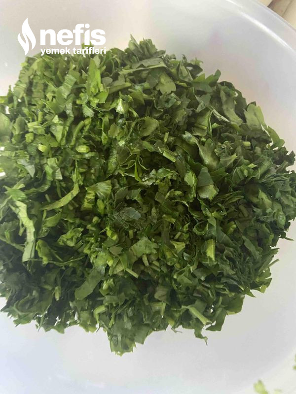 - Maydanoz ve yeşil soğanımızı farklı bir kaba küçük küçük doğrayıp hazırlıyoruz.