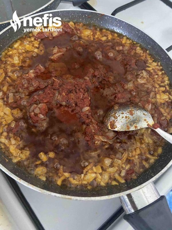 - Bir tavaya soğanlarımızı küp küp doğruyoruz ve yağımızı ekleyip ocağa alıyoruz pembeleşinceye kadar kavuruyoruz salçalarımızı ekleyip kavurmaya devam ediyoruz baharatlarımızı ekleyip kapatıyoruz.