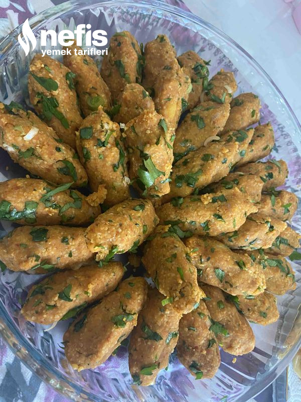 - Limonlarımızı üzerine sıkıyoruz maydonoz ve yeşil soğanlarımızı ekliyoruz karıştırıyoruz içinden biraz alıyoruz parmaklarımız ile avucumuzun içinde sıkıyoruz ve servis tabağına alıyoruz istediğiniz büyüklükte yapabilirsiniz 🙂.