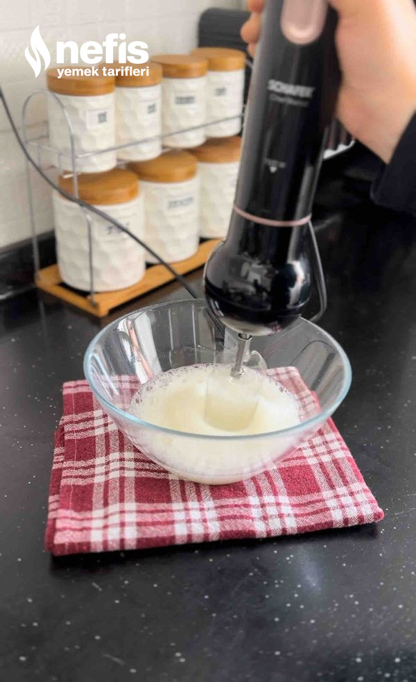 - Mikseri hiç durdurmadan turbo modda şekeri azar azar ek edin ve 10 dk kadar çırpmaya devam edin. (koyu kıvamda ve parlak renkte olacak parmağınızın ortasına aldığınızda pütürlük yok ise olmuş demektir)