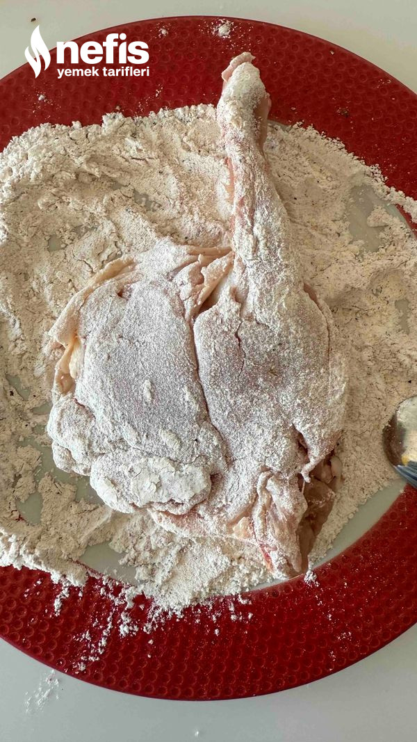1. Düz bir tabağa, un ve baharatları ekleyip karıştırın, tavukları her iki taraftan buladığın.
