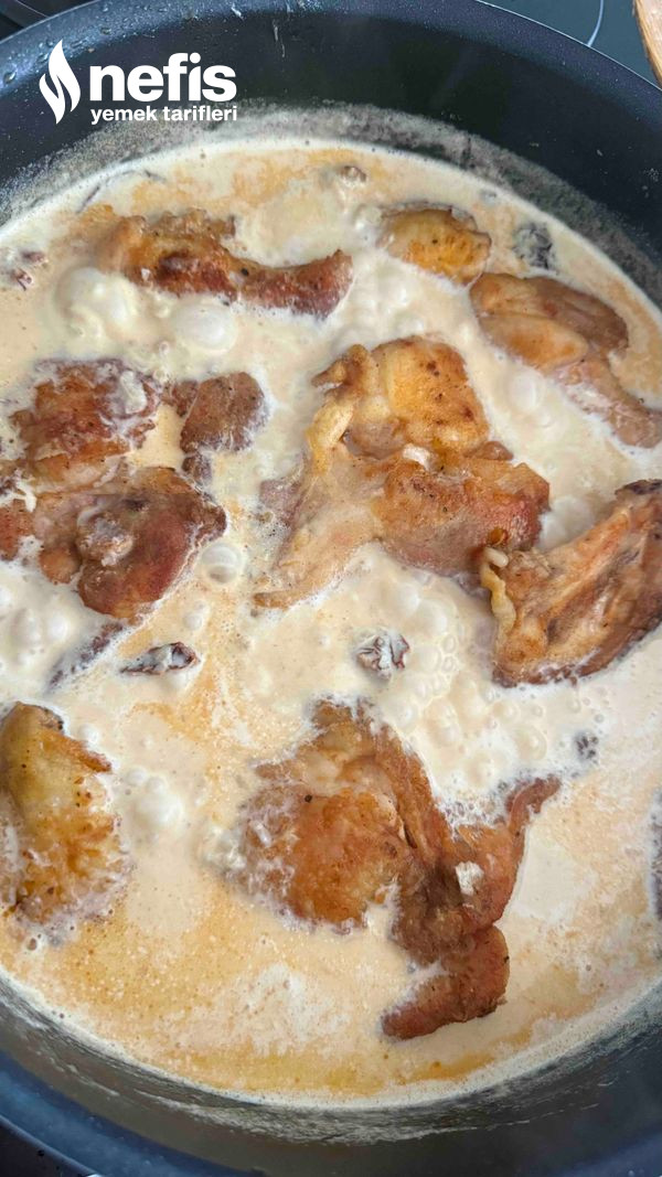 6. Tavukları yerleştirin, kaşık yardımıyla üzerine sosu döküp kapağını kapatıp 10 dakika pişirin.