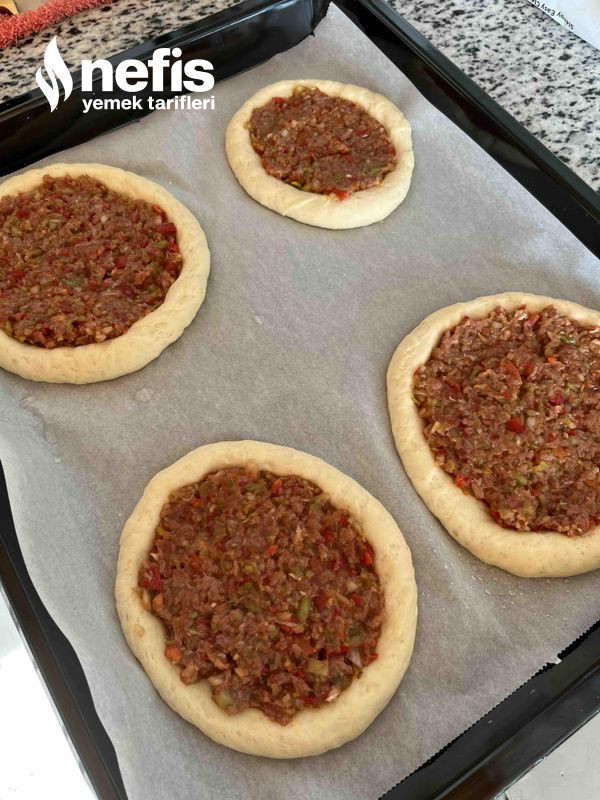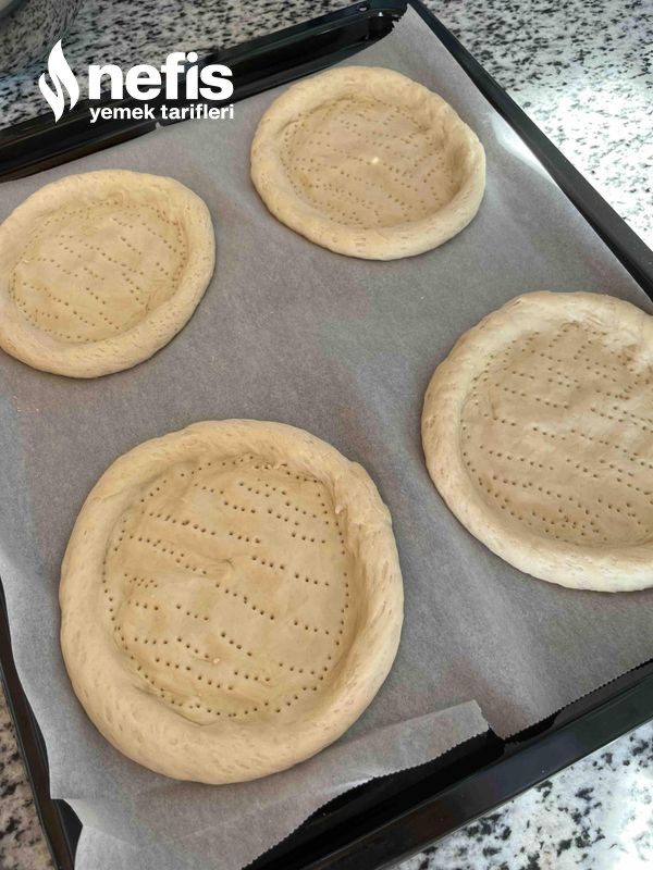 - Mayalanan hamurdan portakal büyüklüğünde bezeler yapıyor, unlu tezgahta yuvarlıyoruz. Bezeleri fırın tepsisine koyup parmaklarımızla kenarları yüksek olacak formda açıyoruz.
