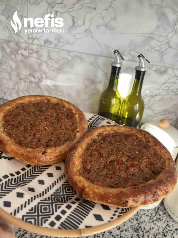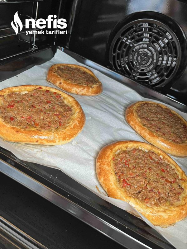 - Kıymalı harcı ortalarına yayıyoruz, kenarlarına yumurta sarısı sürüyoruz. 200 derece ısıtılmış fırında 30 dakika pişiriyoruz. Deneyeceklere şimdiden afiyet olsun.