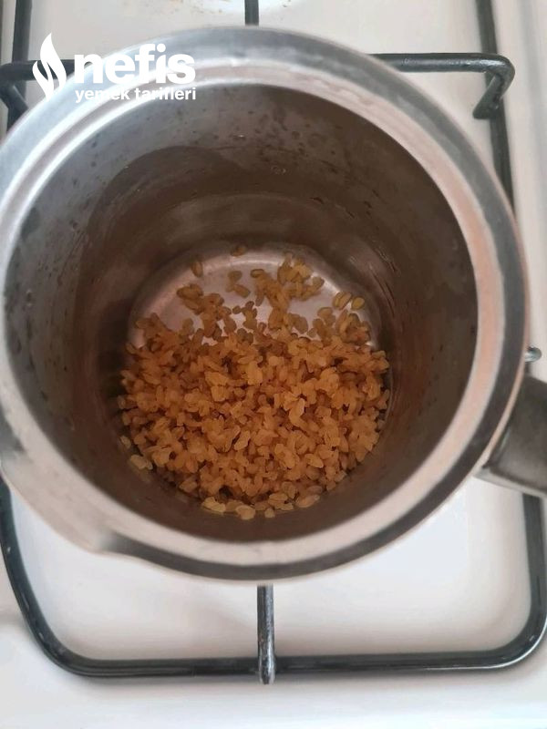 - 1,5 yemek kaşığı bulguru yarım Türk kahvesi fincanı su ile haşlayalım.