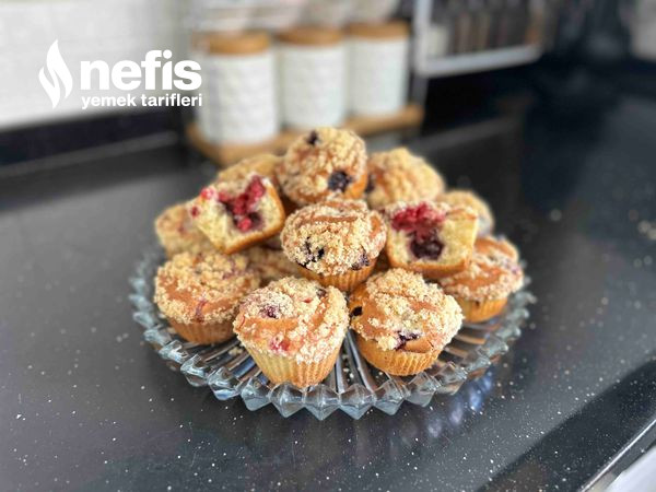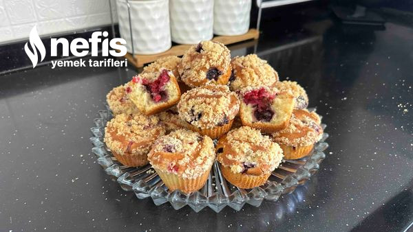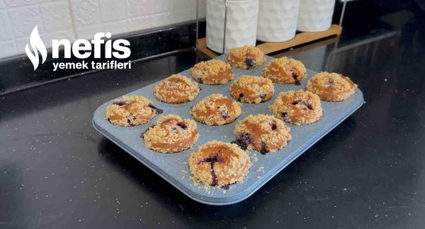 - Hazırladığımız crubleyi keklerin üzerine çokça ekleyip evvelce ısıtılmış 180 derece fırında 35 dk pişirelim.