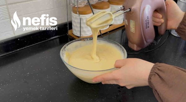 - Ardından süt ve sıvı yağı ekleyıp tekrar çırpın.