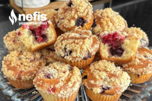 - Hazırladığımız crubleyi keklerin üzerine çokça ekleyip evvelce ısıtılmış 180 derece fırında 35 dk pişirelim.