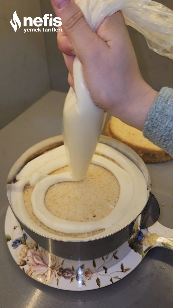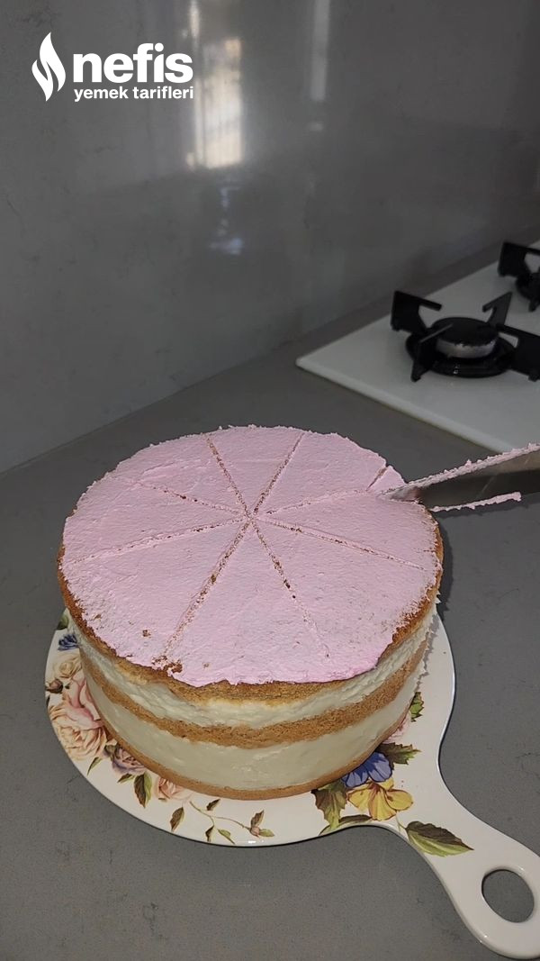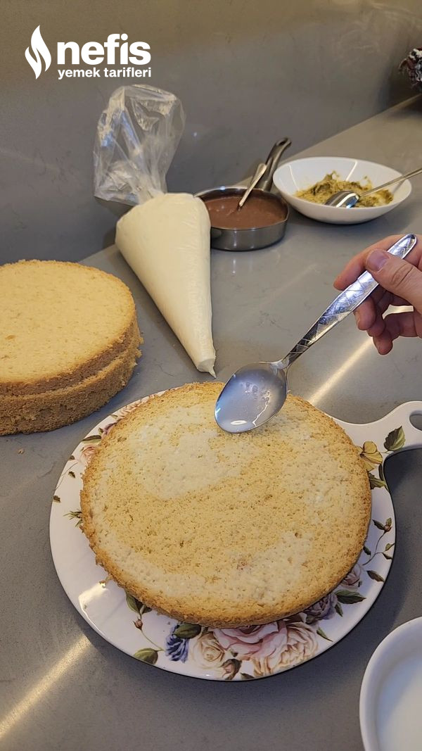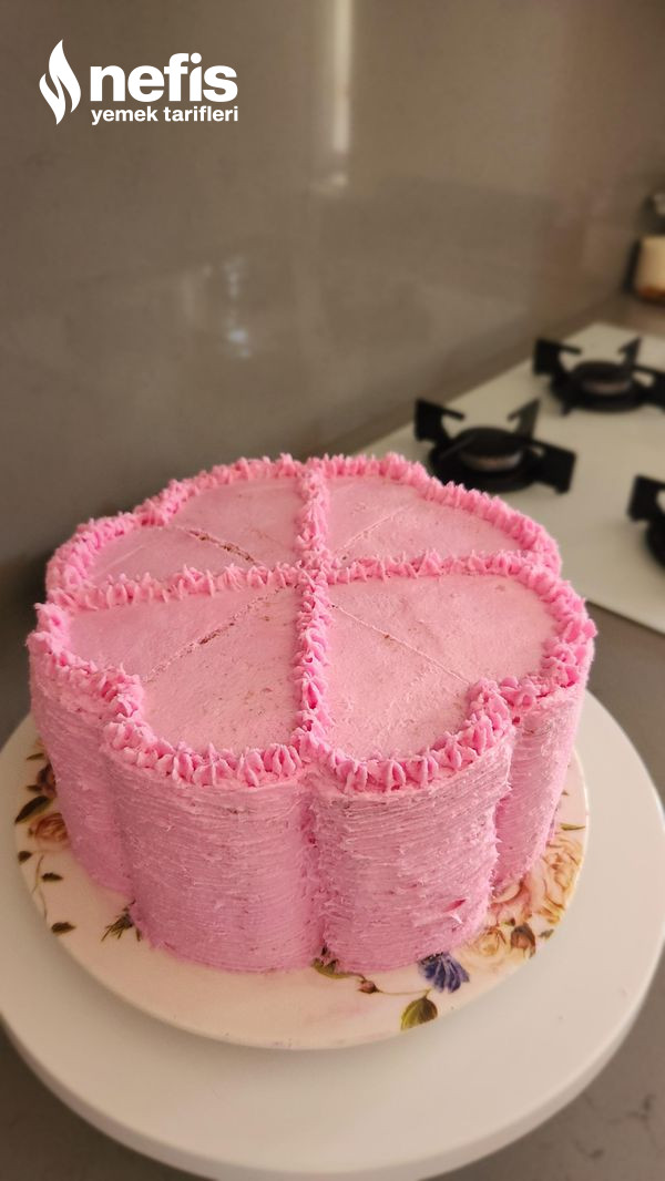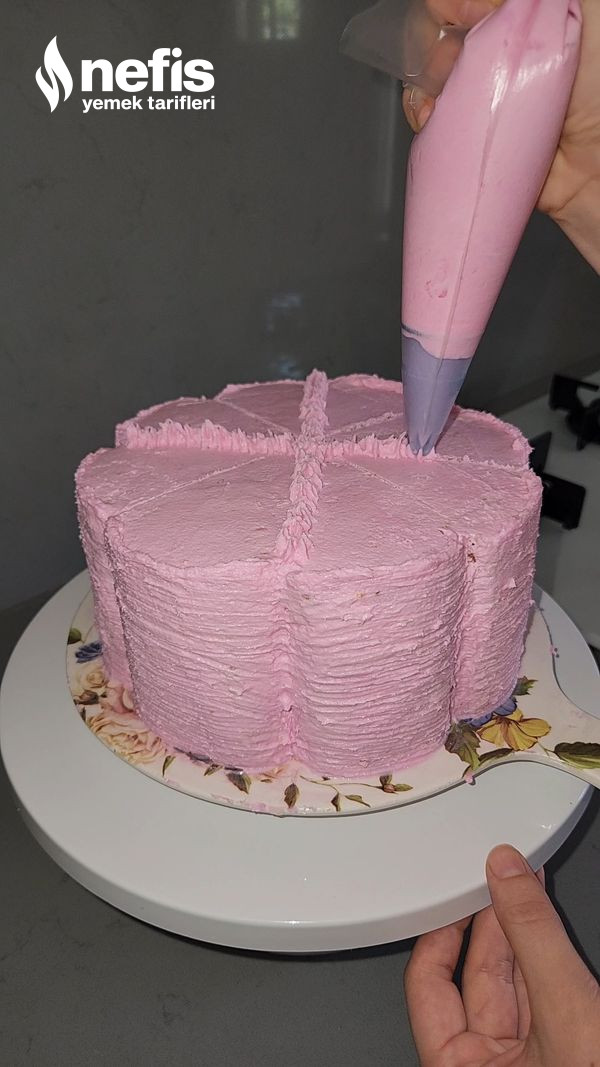 - Çiçek hali veriyorum. 1-2 saat dinlendirip yeniden 1 çay bardağı soğuk süt ile çırptığımız kremşanti ile güzelce sıvayalım.