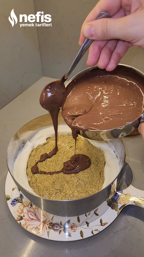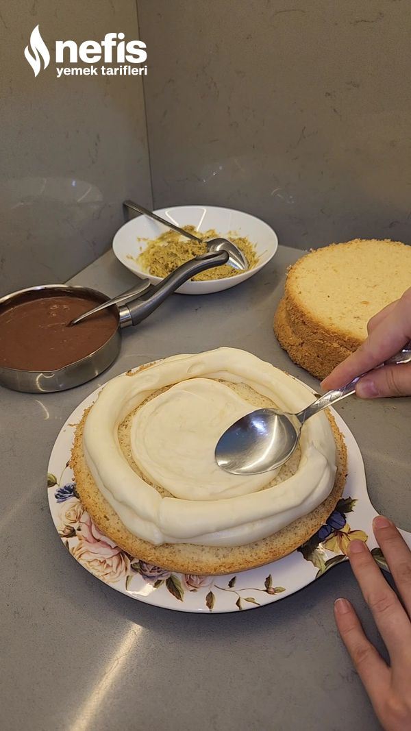 - Orta kısma antep fıstığı koyup üzerine çikolatalı ganajdan dökelim.