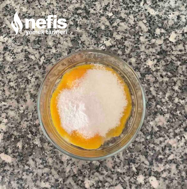 1. Keki için; evvel şeker tozu ve yumurtayı beyazlaşana kadar mikserle çırpalım.