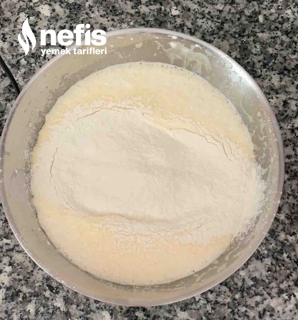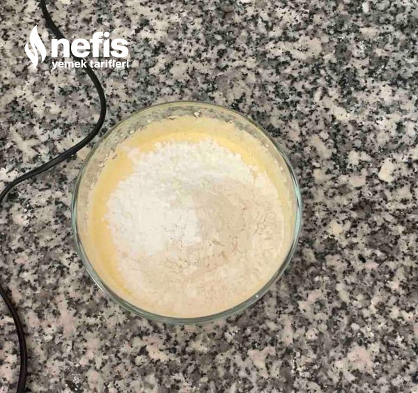 3. Un, kabartma tozu ve vanilyayı elekten eleyerek karıştıralım.