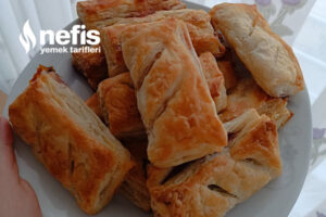 1. Milföyleri ikiye bölüp ortasına reçel, çikolata sürüp, ikiye yapıştıralım yeterlice kenarları dışarı akmasın.
