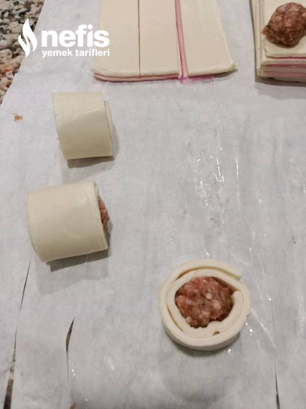 8. Önce milföy sürdüm. Kalanına sos yaptım sos salçasını koyun kavurun.