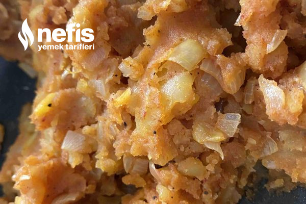 2. O sırada soğan ve salçayı kavuralım ,haşlanan patateslerle karıştıralım ve baharatları ek edelim.