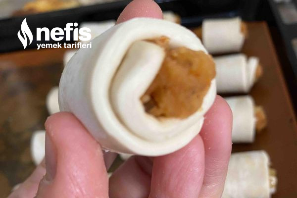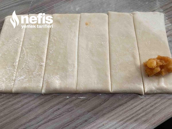 3. Soğuyan patatesi bi kenara koyalım dikdörtgen milföyü 6 kesim dik halde keselim.