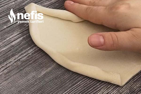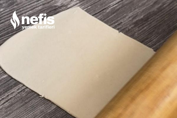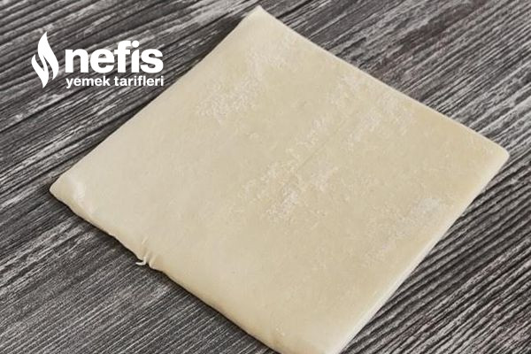 1. Milföy hamurunu tezgaha serelim ortadan ikiye bölelim.