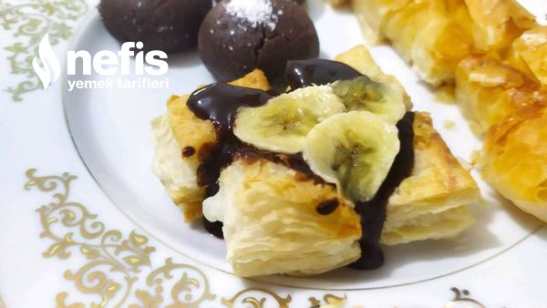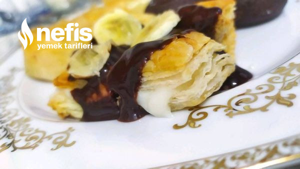 3. Üzeri için çikolata sosumuzu pişirip kaynatıyoruz, milföylerimizin ortasını açıp ortasına krema koyup tekrar kapatıp tabağa yerleştiriyoruz.