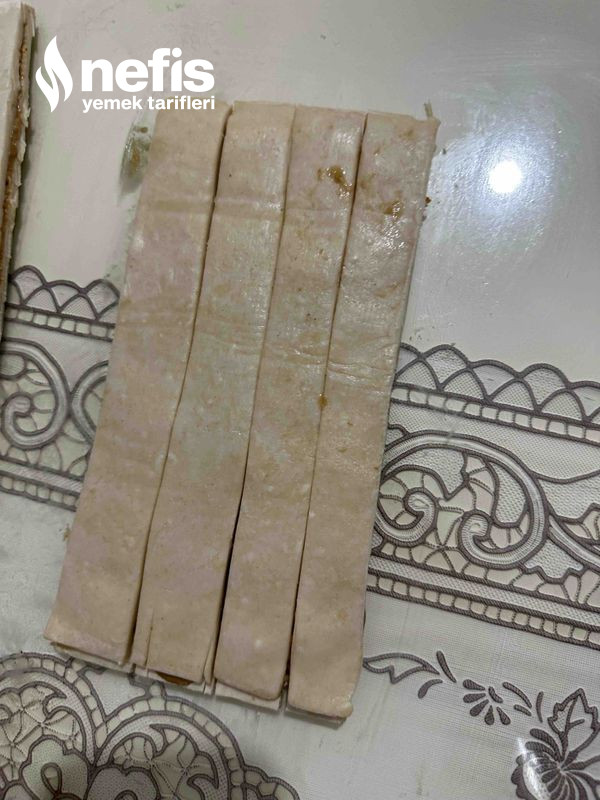2. Üzerine öteki milföyü kapatıp dört eşit kesime kesiyoruz.