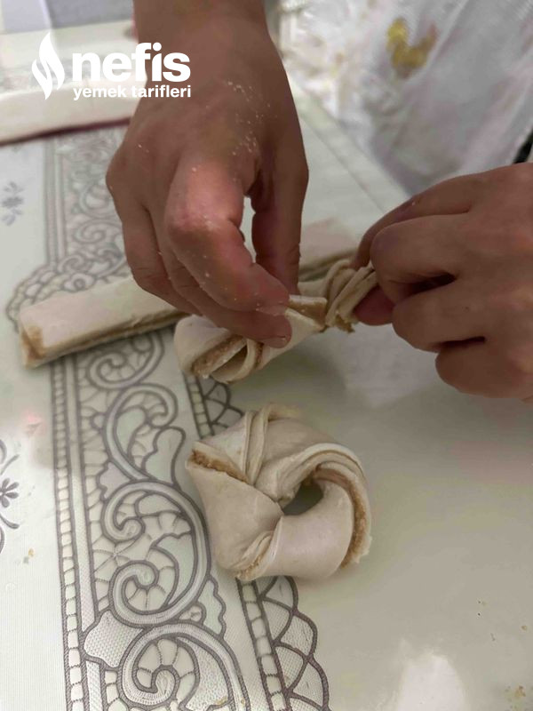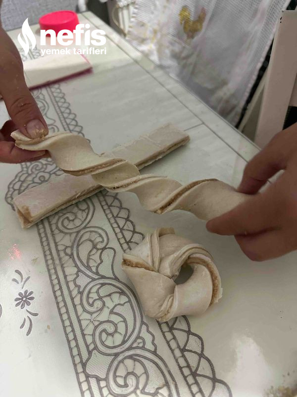 3. Elimizde burup hal verip tepsiye diziyoruz.