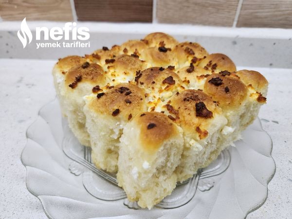 - Ufalanmış peynir de üzerine serpilir. Üzeri diğer bir tepsi ile kapatılır. Mayalanması için tekrar bir saat kadar bekletilir.
