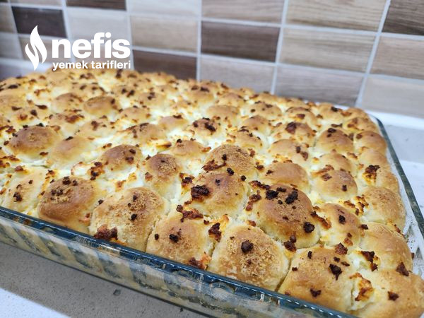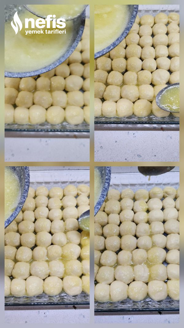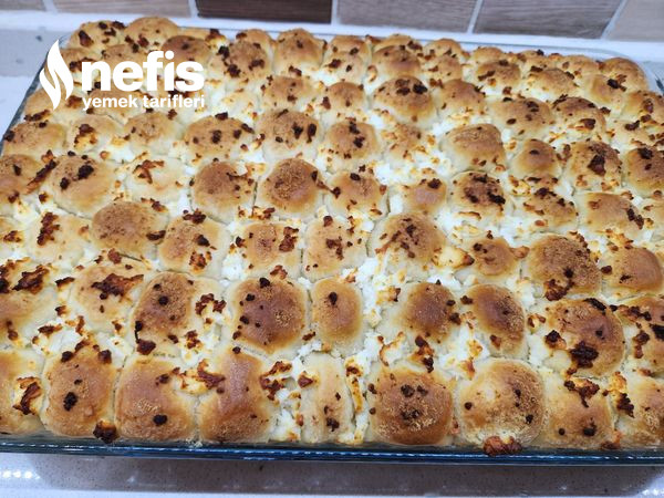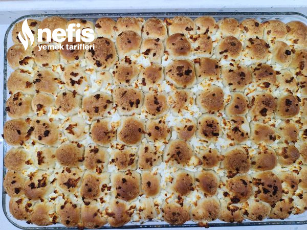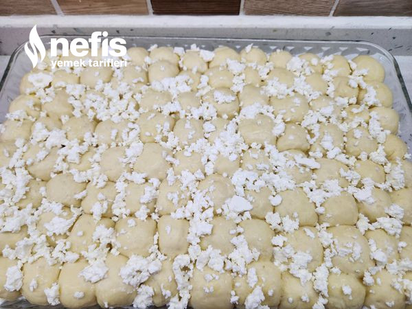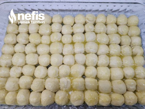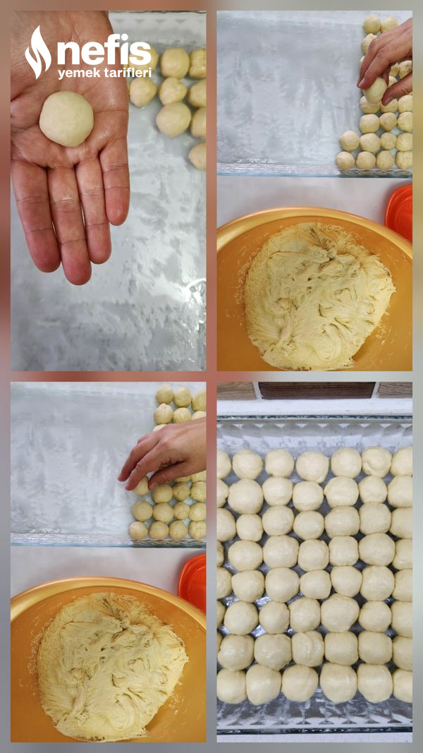 - Hazır olan hamurdan ceviz büyüklüğünde küçük toplar yapılır. Yağlanmış fırın tepsisine yan yana dizilir.
