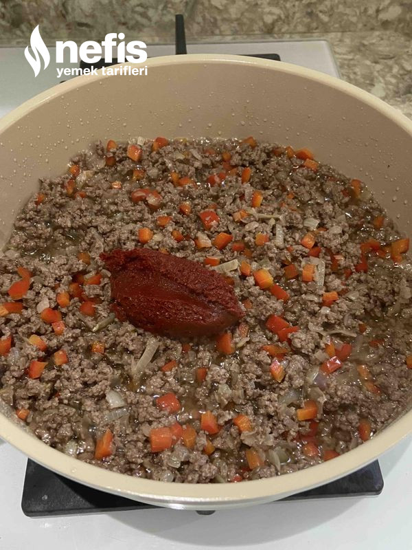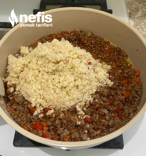 - İlk olarak bulguru ıslıyoruz, soğanı ince doğrayıp tencereye alıyoruz biraz kavuruyoruz, kıymayı ek edip devam kavuruyoruz, kapyayı ekleyip devam kavuruyoruz, 1 yemek kaşığı salçayı ek edip devam kavuruyoruz,.