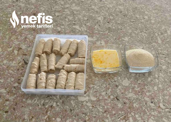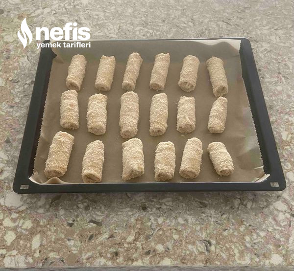- Sardığımız yufkaları evvel yumurtalı karışıma sonra galeta ununa bulayıp fırın tepsisine alıyoruz, evvelce ısıtılmış 180 derece fırında kızarıncaya kadar pişiriyoruz, isterseniz yağda kızartabilirsiniz.