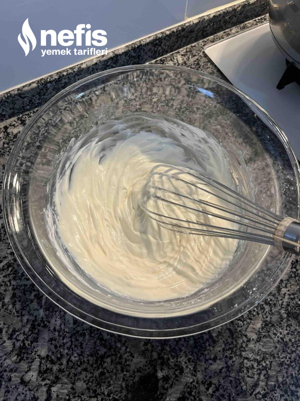 3. Üzerine toz şekeri ekleyip çırpalım.