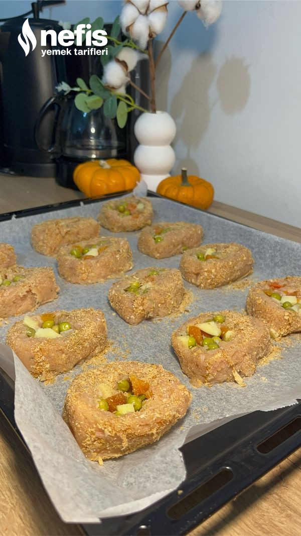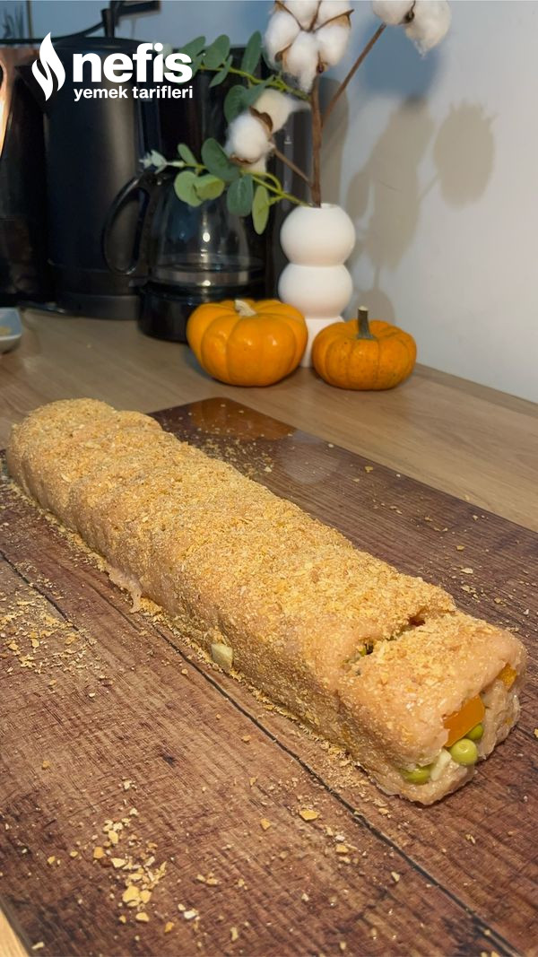 Not: tavuk ruloyu galeta unu ile kaplamayı unutup modüllere böldüm bundan ötürü sonradan üzerini kapladım. Siz açıklamada belirttiğim üzere modüllere bölmeden evvel kaplayınız.