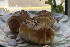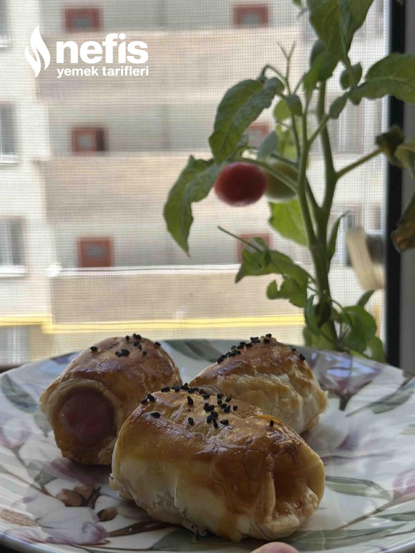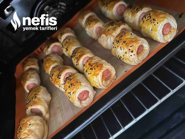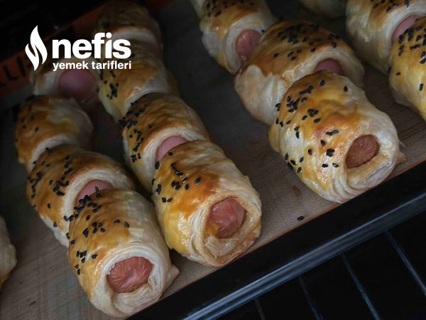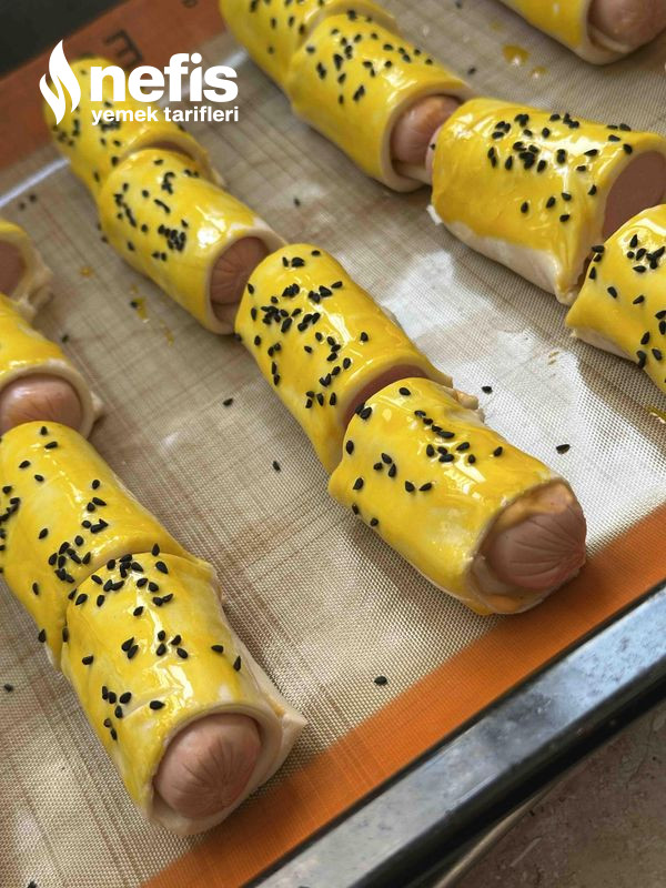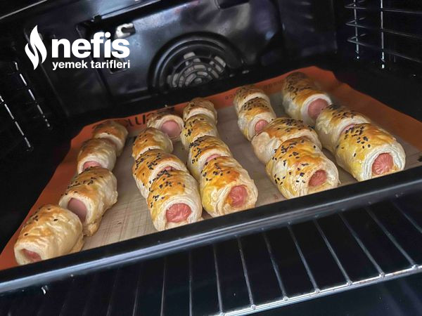 - Ve tam sosis olan milföy hamurun da ortadan kese bilirsiniz ve ya dilerseniz bütün de kalabilir.