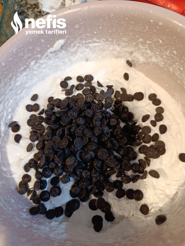 3. Krem şantinin içine damla çikolata ek edelim karıştıralım.