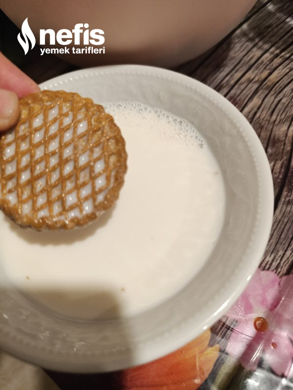 4. Bisküvileri fırın tepsisine sütle ıslatıp dizelim tek tek.