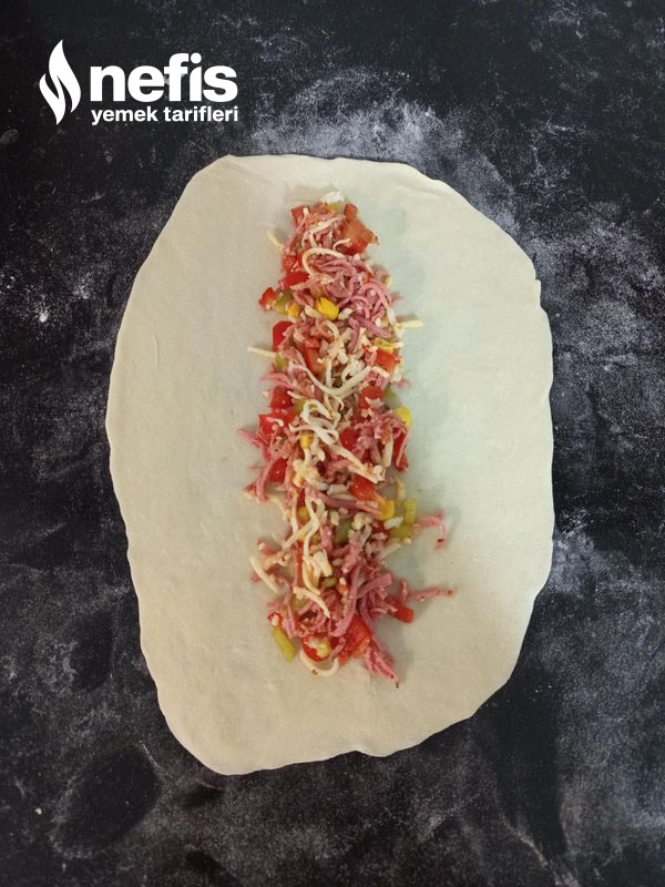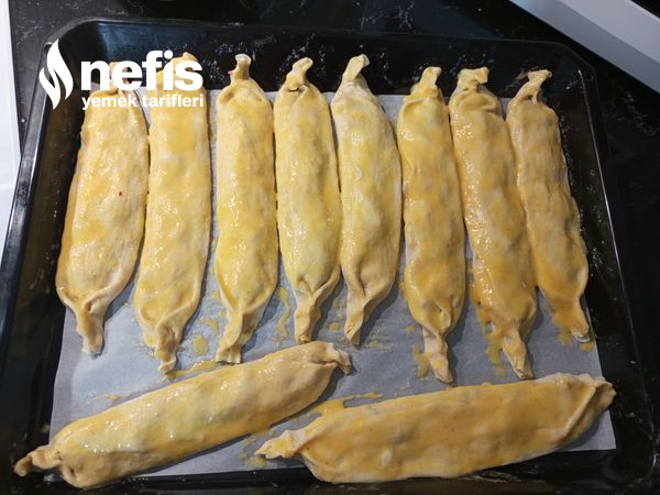 - Tek tek uzun uzun açalım iç harcını ekleyip birinci bir tarafını sonra öteki tarafını katlayıp uçlarını bükelim.