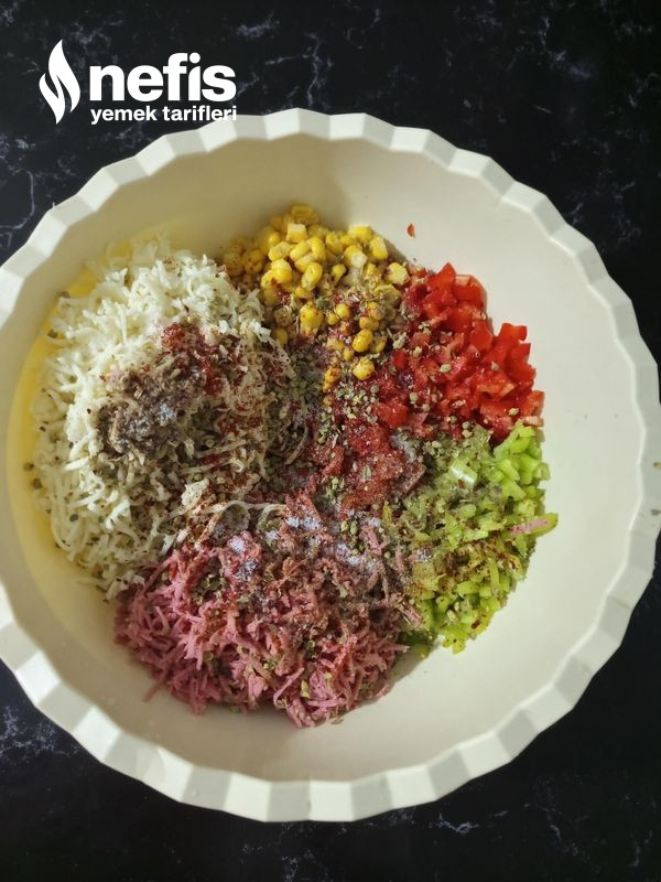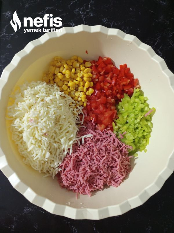 - Salam ve kaşar peyniri rendeden geçirelim.