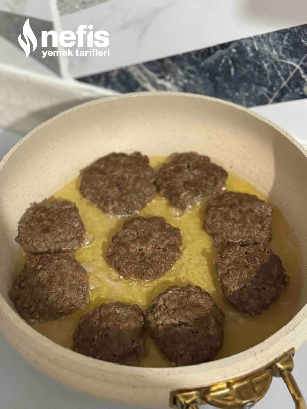 2. Köfte formunu verdiğimiz kıymamızı gerili önlü orta ateşte güzelce kızartıyoruz. Afiyet olsun.