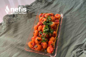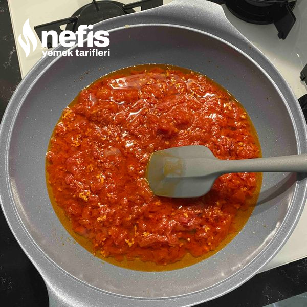- Üzerine rendelediğimiz domates (dilerseniz konserve domates kullanabilirsiniz) ve salçamızı ekliyoruz kavurmaya devam ediyoruz sonra maydanozlarınızı da sosun içine ekleyip uygunca karıştırdıktan sonra köftelerimizi koyuyoruz.