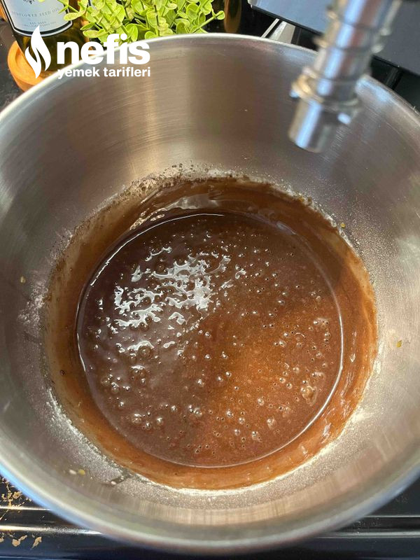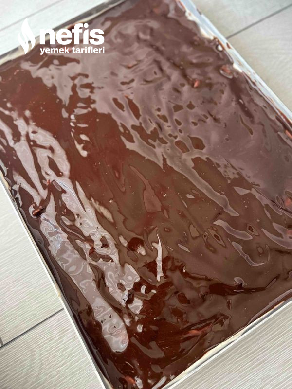 - Kekin üzerine dökelim. Spatula ile düzeltelim üzerine hazırlamış olduğumuz hazır çikolata sosunu dökelim.